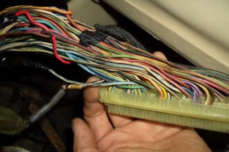 本日は355のエンジン不調をご紹介します。 アイドリングの状態で1、2気筒死んでます。 インジェクターを点検後、NO,1とNO,2のインジェクターのマイナス回路が調子が悪い為配線を追って行くと、ECUの手前で配線修理の跡…