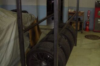 今日は、工場の二階にあふれかえっていたタイヤをなんとかしようということで、 タイヤラックを作ったので、ちょっと紹介します。 近くの鉄工所に寸法を言って材料を切ってもらい、 工場に持ち帰り、溶接しました。 とりあえず一個出…