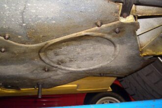 本日はランボルギーニ ガヤルドの燃料漏れ修理をご紹介致します。 よくあるのは燃料ホースですが、今回は燃料タンクからの漏れになります。 下から覗くとタンクのアンダーカバーに燃料漏れの跡があり、カバーを外して燃料タンクの保護…
