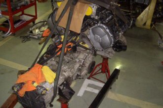 今回も前回のブログの続きでF348のタイミングベルト交換の続きになります。 前回はエンジンを下ろす直前まででしたが今回はエンジンを下ろしていきます。 合計16本のボルトを外したら慎重に車体をリフトで上げて切り離していきま…