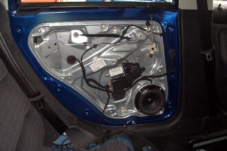 今回はドアロックがロック状態になってしまいドアが開かなくなってしまったパサートのドアロック交換です。 まずはシートを外しドアが閉まっている状態で内張りを外していきます。 内張りを外すとアルミのパネルが付いているのでパネル…