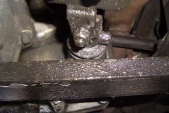 エンジン・ミッションを降ろしてタイベル交換中のテスタロッサです。 右側のラジエターは既に修理済みの様でしたが、左側のラジエターはまだ未修理の様でクーラント漏れの跡がアリアリです。 アッパー・ロアー共、漏れた跡が見えます。…