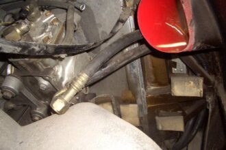 フェラーリ308QVのエアコン修理の続きです。 前回、エアコンコンプレッサーはオーバーホールしたのですが、ここからが問題の部分です。 最初にテストガスをチャージした時に発見したのですが、エアコンホースからもガスが漏れてい…