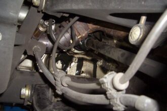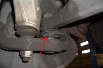 今日は、BMW320のコントロールアームブッシュ交換の作業を紹介したいと思います。 矢印のブッシュを左右交換します。 まず、矢印のボルトを外します。 外れたら、プーラーで引き抜きます。 外れました。 反対は、こんな感じで…