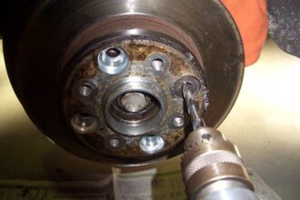 前回アウディーのブレーキ製作を書いたのですが、その時に一本緩まないボルトが有ったのです。 今回はそのボルトを外す所を紹介したいと思います。 今回の緩まないボルトの箇所は、スペーサーを締め付けているボルトです。 他のボルト…