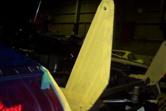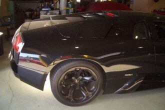 ムルシエラゴのR/ウィングの製作・取り付けの続きです。 前回、各部の採寸をしてウィングステーの製作に取り掛かりました。 こんな感じのウィングステーを製作しました。 製作時の画像が無く申し訳ありません。 ウィングステーを塗…
