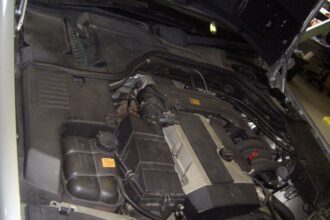 MB S320(W140)のA/Cダストフィルターの交換です。 定期点検時にA/Cの風量が弱いとの事でA/Cのダストフィルターを点検して見ました。 A/Cダストフィルターはエンジン後側のバルクヘッド上側のカバーの中です。…