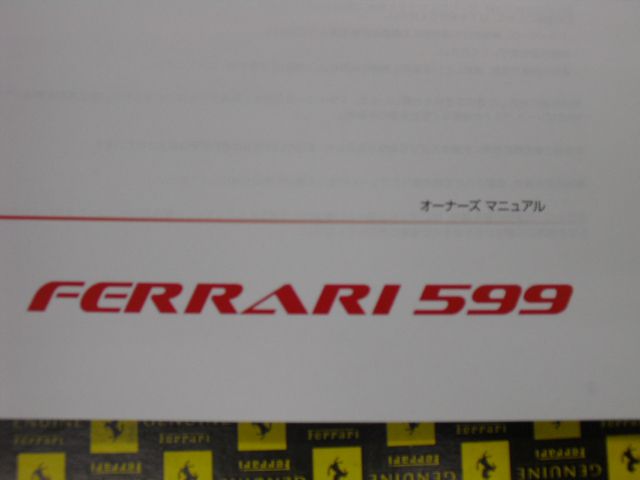 フェラーリ 599 の取扱説明書(日本語版)が入荷してまいりました。