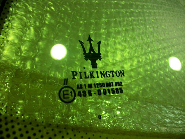 クワトロポルテのガラスは最近のフェラーリと違うメーカーで製造されており、512TR・Mのフロントガラスに採用されているPILKINGTON製です。