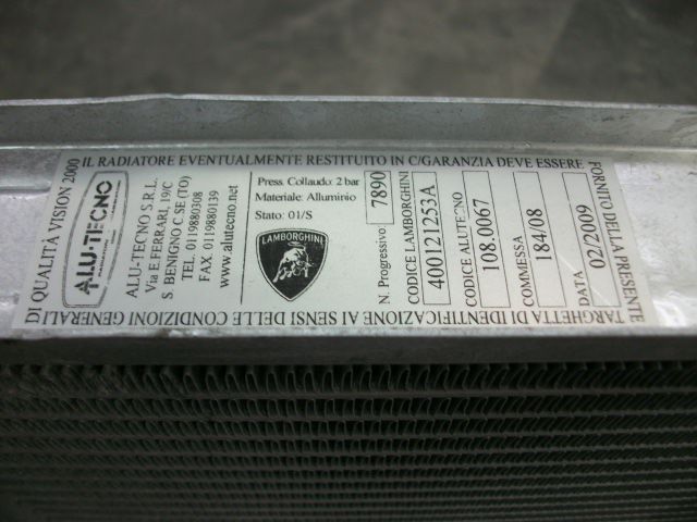 今回のラジエターは残念ながらランボルギーニ専用品だったので、正規ディーラー経由で入手です。