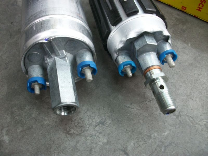 現在フェラーリから供給されるポンプ(写真右)はフィッティング形状が異なるのでポン付けは出来ませんので取付にあたっては他に部品が必要になります。