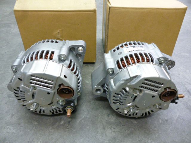 どちらのオルタネーターもデンソー製(Made In Japan)で、大きな違いはベルトのプーリー径とB端子の向き。