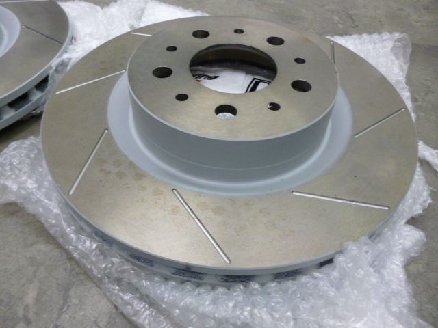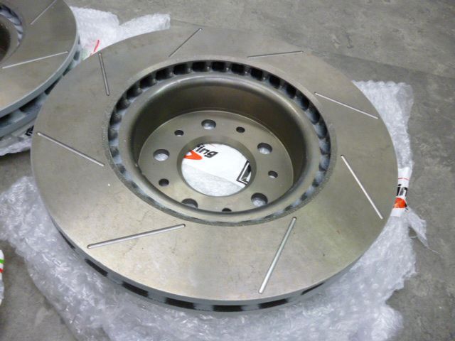 純正品(BREMBO)のローターにスリット加工済みです(な…なんとストレートタイプ)