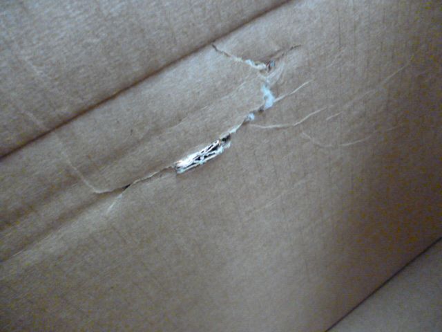 間違いなく箱の外から何かが突き破った跡が。
