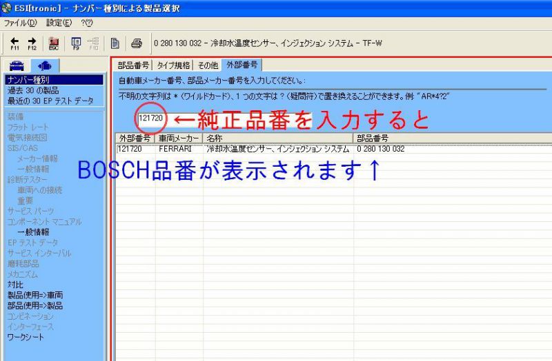 ←純正の部品番号が分かればすぐにBOSCH品番が出せます。