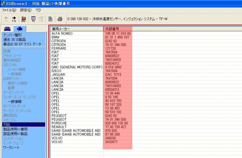 ちなみに逆引きも出来ます。フェラーリと同じセンサーをいろいろなメーカーでも使用してます。