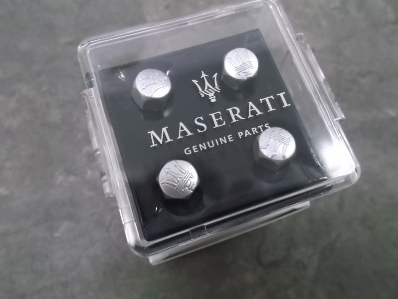 マセラティ純正のタイヤのバルブキャップセットでございます。