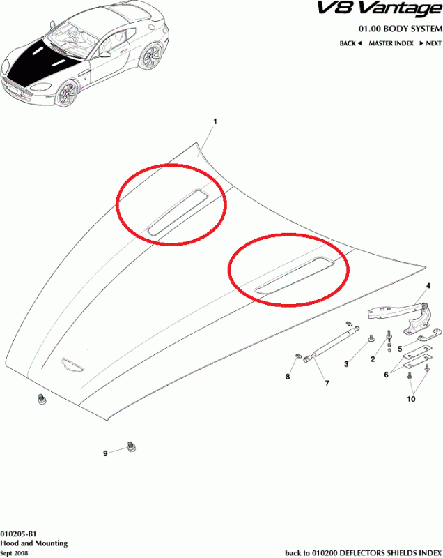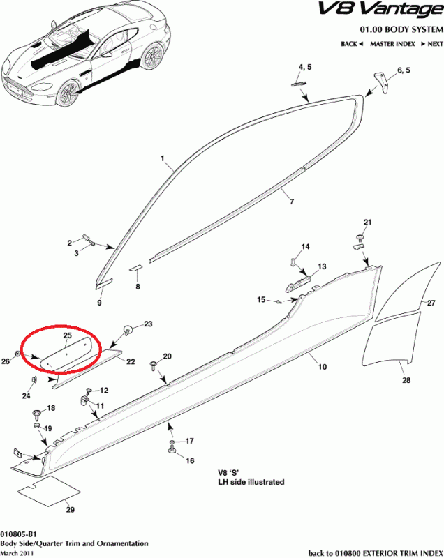 2010年以降のV8ヴァンテージ用のアクセサリーパーツです。実際の取り付け画像がございませんのでパーツリストの赤丸辺りに使用しています。