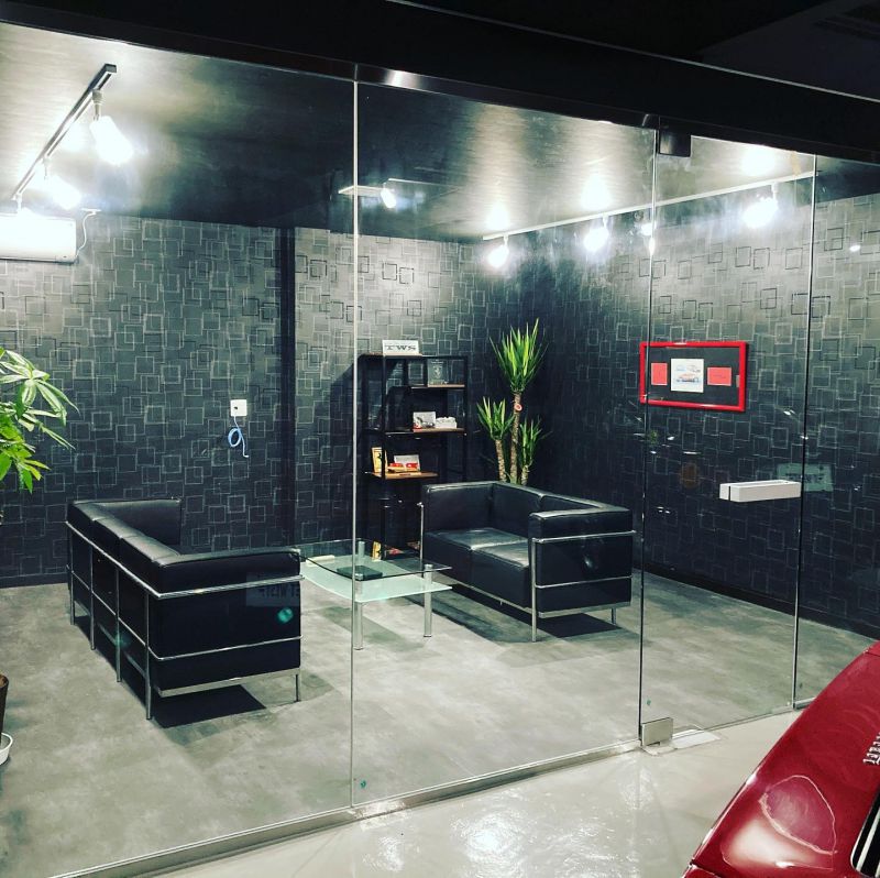 お客様には寛ぎながら、落ち着いたトーンで商談をしたいとの思いを込めて設計いたしました。セクシーなガラス張りになっていまぁす。完全個室の商談スペースを採用している企業は少ないのではないでしょうか(*´ω`*)