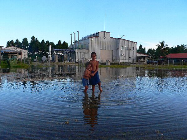 海抜平均1.5mという地形と、サンゴ礁の上になる島という地形が合わさり、島の半分ほどが満潮時に水没してしまうのです。一部の地域では膝の高さほどまで水没してしまうそうです。現地ではこの現象を「キングタイト」と呼んでいます。