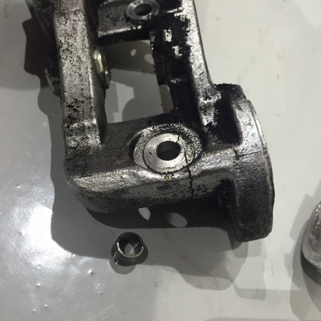 原因を調べていくと、アルミ製のブラケットが割れていました。