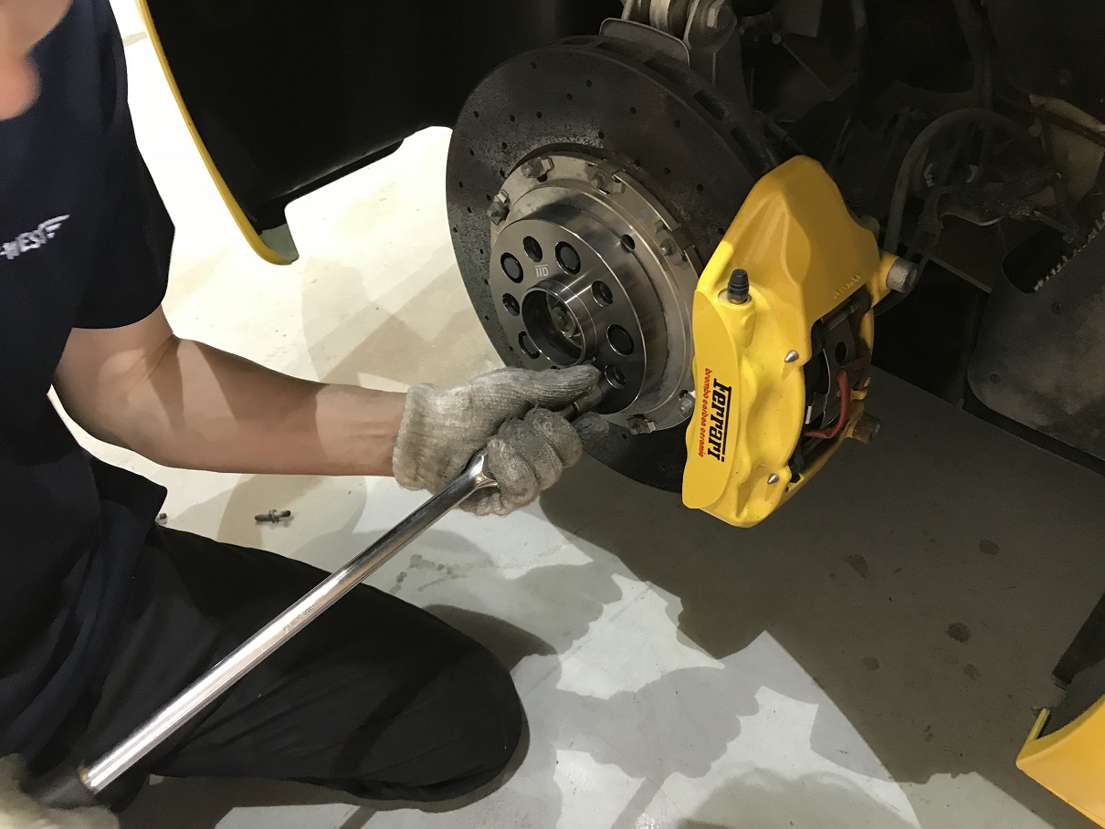 つい先日、ご来店いただいたお客様よりホイールスペーサー取付のご要望がありましたので装着させていただきました。