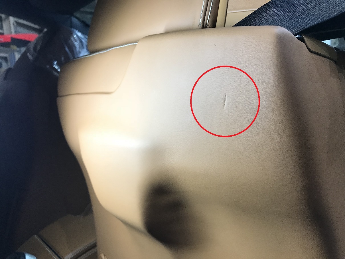 写真の様にシートの背中側、肩部分にへこみ傷が見受けられます。