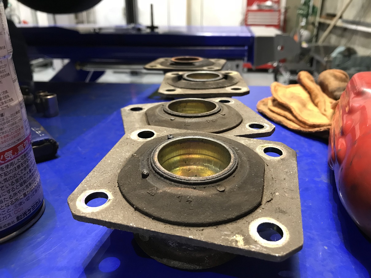 エンジンマウントとミッションマウントが経年劣化しており、スパークプラグ等の消耗部品も併せて交換です。