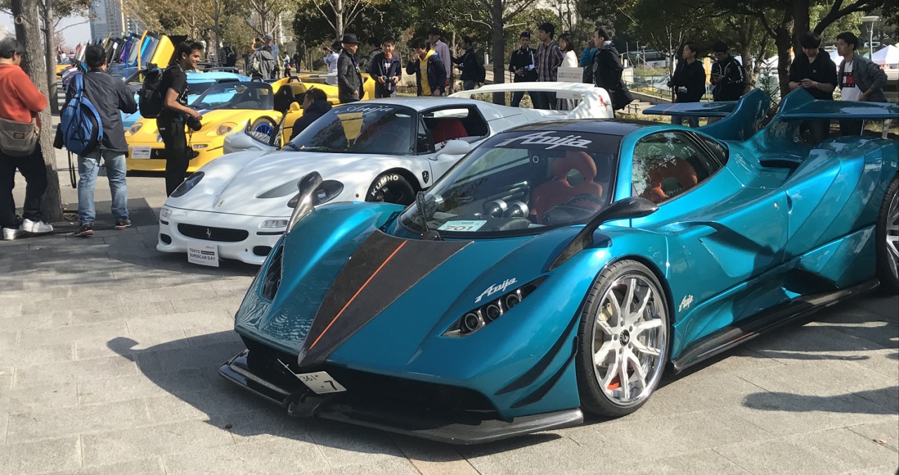 オートサロンにも展示されていた、パガーニ「ゾンダ」のカスタムカーがお出迎え。