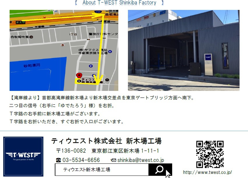 また、詳細については新木場工場フロントまでご連絡下さい。