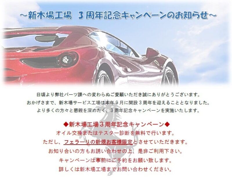 新木場工場に興味をお持ちの方々へ「新木場工場開設3周年記念キャンペーン」と題し一つのきっかけ作りをさせていただきます。