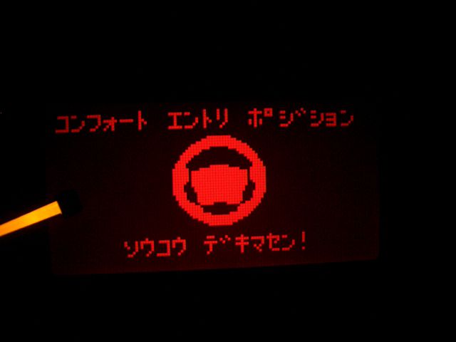 エンジンを掛けるとメーター内のモニターに赤々と点灯して、ステアリングのチルト/テレスコの調整が