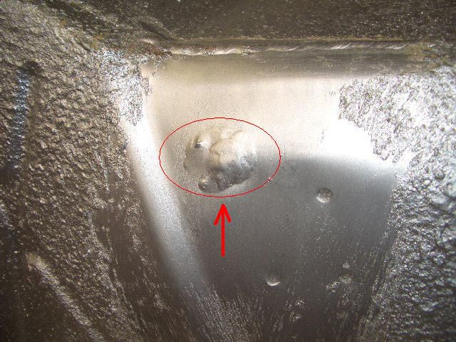 矢印の溶接跡が、穴の空いていた所です。