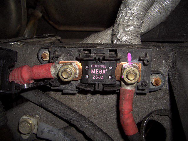 プラス線の間にあるヒューズがなぜか、切れていました。