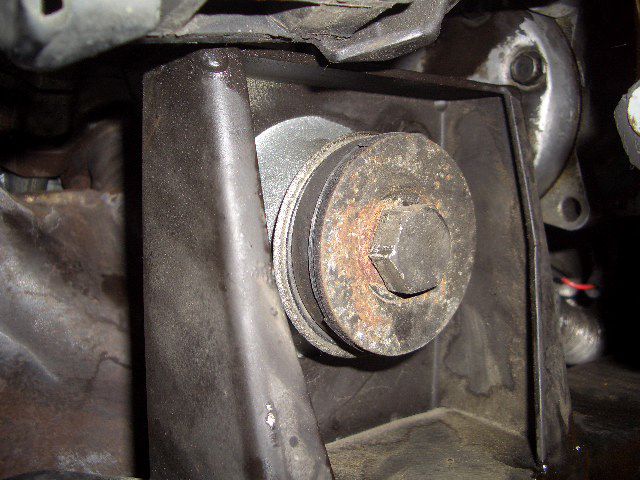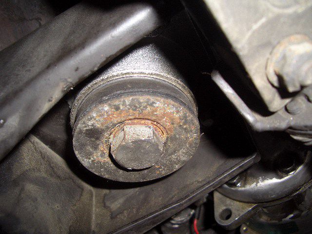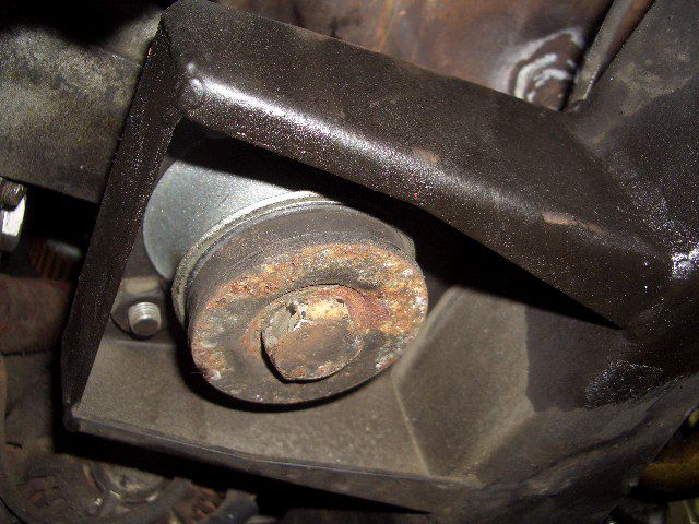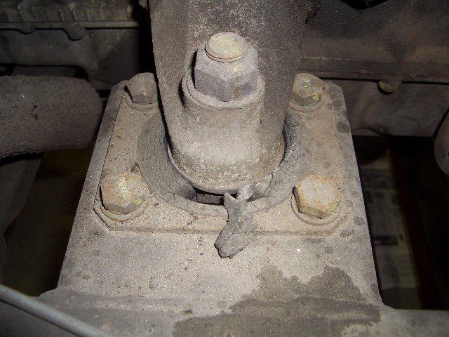 まずマウント中央のナットを取り外し、エンジンを上に持ち上げます。