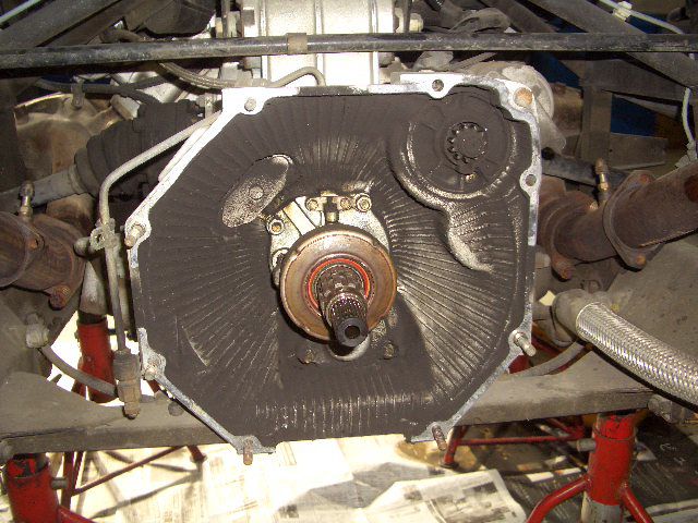 前回からのタイベル交換と同時作業なので、エンジン・ミッションが降りている為クラッチ廻りは丸見えです