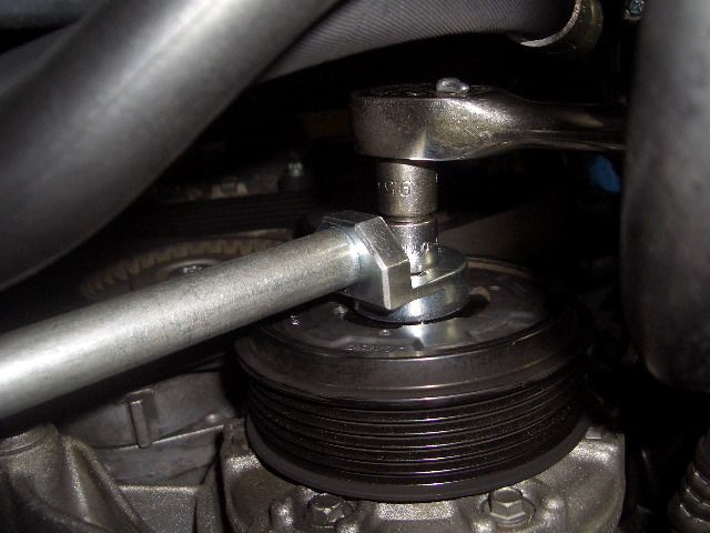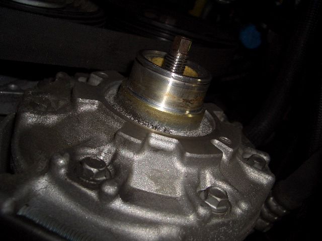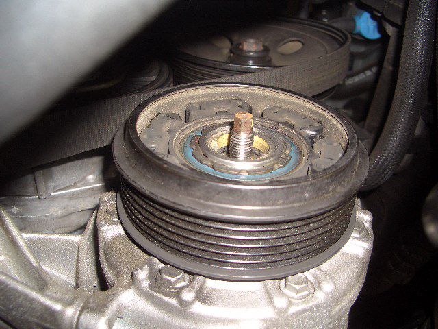このタイプのA/Cコンプレッサーはプーリーキットだけで部品が出ているので、早速、部品注文をして交換作業にはいります。SSTを使用してバラして行きます。