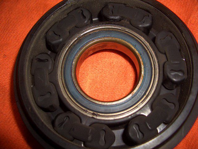 A/Cコンプレッサーからプーリー部分を全部バラして、ベアリングを回して点検するとゴロゴロいってます。