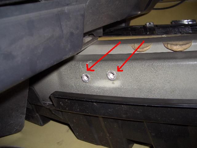 バンパー裏側のフレームに穴あけ加工して、埋め込みナットを取り付けて