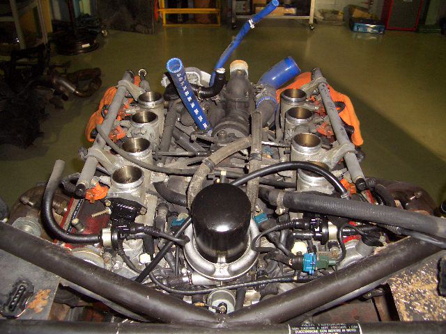 スロットル廻りが取れたら、Vバンクの中央にある、水廻りの部品を外して行きます。