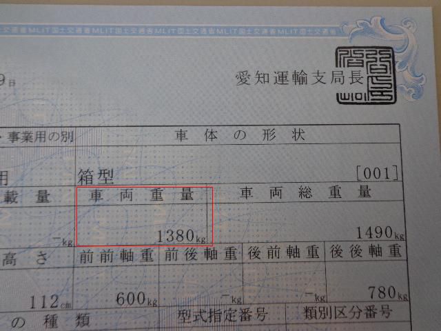 ■重量税は車検証記載にある車両重量(上記写真の赤○)を、ご確認下さい。