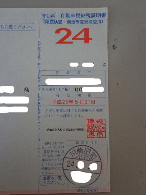 車検証、自倍責保険証、納税証明証、諸費用(重量税、自倍責保険料、印紙)をご用意下さい。