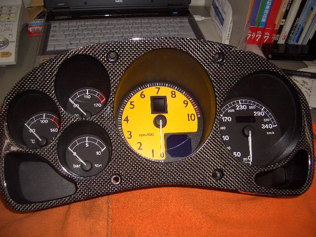 今回は、ついでに、メーターの枠をカーボンに交換したので、