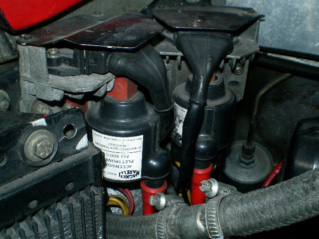 各部を点検して見ると、どうやらF側のイグニッションコイルが逝っちゃった様です。