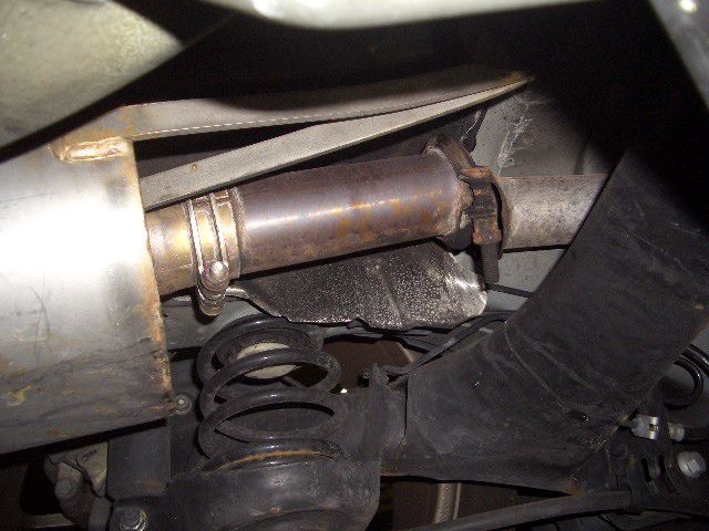 リヤマフラーとセンターパイプとのジョイント部分ですが、バンドから外れて完全に抜けちゃっています。