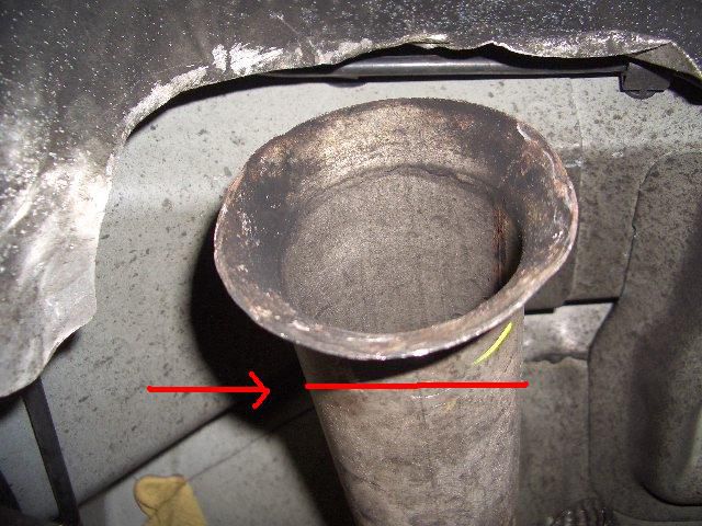 センターパイプ側も酷い事に成っちゃっているので、センターパイプを矢印の辺でカットして