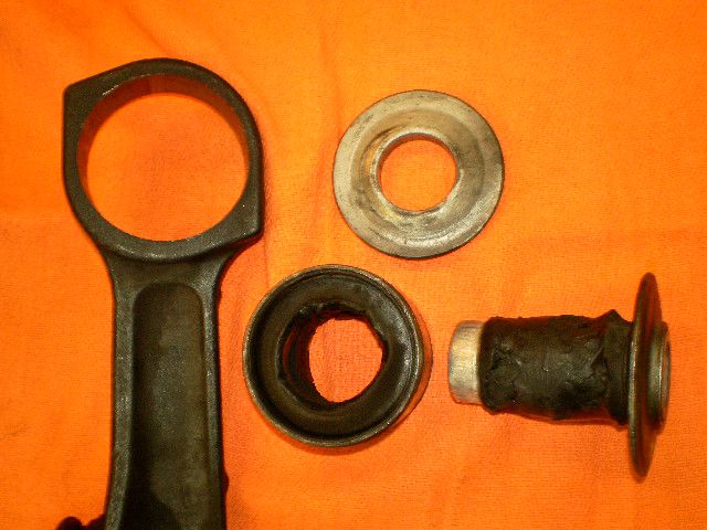 早速、ロアーアームを車両から外して、ブッシュキットを交換です。ご覧のとうりブッシュは完全に抜けちゃっています。