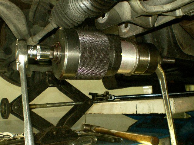 そして、もう一方は車上での交換にチャレンジして見ました。何とかブッシュをロアーアームから抜き取り