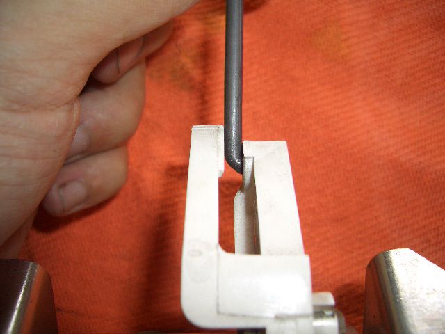 右の画像の様に本来はU字の白いパーツの隙間にロッドが位置していなければいけないのですが、左の画像の様にロットがずれてしまい、いくらノブを引いてもロットが十分に動かずロック解除が出来なくなっていたみたいです。