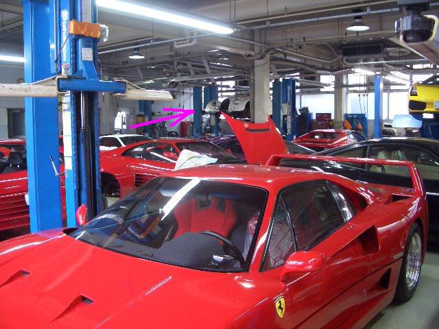 工場の片隅でリフトアップされている、